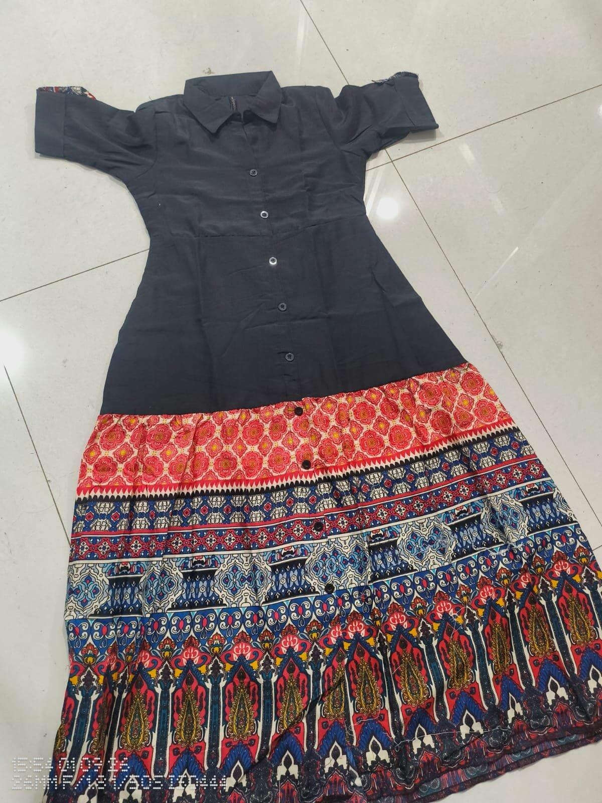 True splendor comes out from your dressing style and design with this Black Rayon Printed Western Dress. This stunning dress is showing some amazing with digital print. (Slight variation in color, fabric & work is possible. Model images are only representative.)