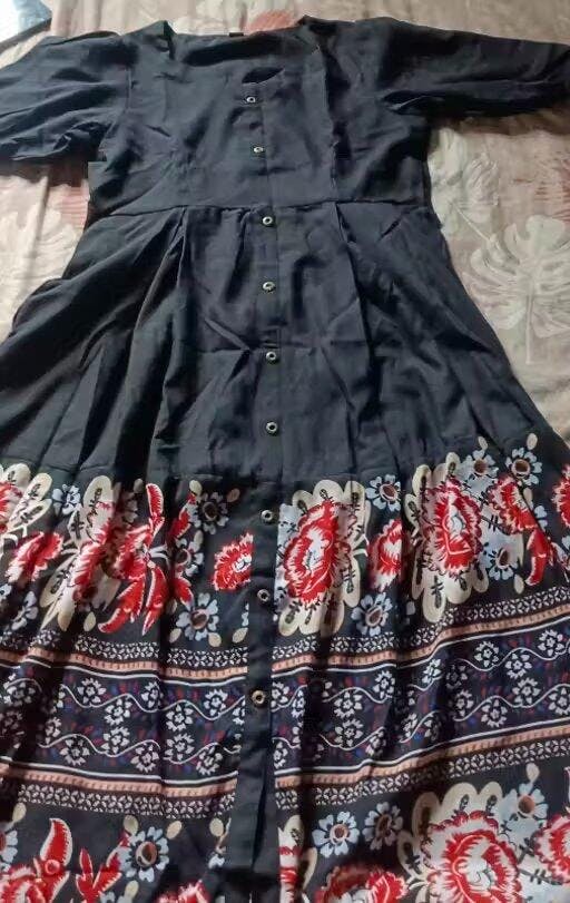 Make the heads turn after you dress up in this Black Rayon Printed Western Dress. The charming print in the course of the dress is awe inspiring. (Slight variation in color, fabric & work is possible. Model images are only representative.)