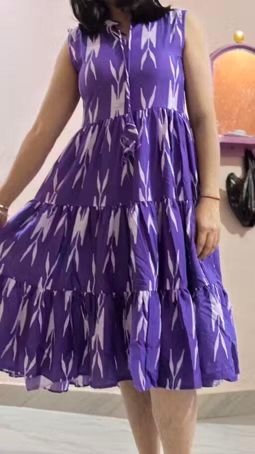 Purple Cotton Printed Dress